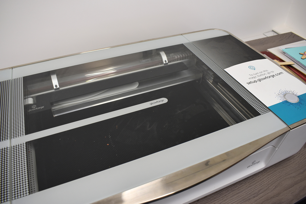 In Creative Media, the Glowforge lasers cut and engrave designs onto materials such as wood, acrylic, leather and more. This means you turn digital artwork into physical products, from signage and packaging to personalised merchandise and detailed creative pieces.